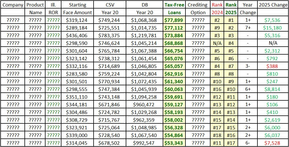 I just updated the IUL probability of return chart. I hate to say it, but I forgot to do so at the end of 2024. I’ll be updating it again in January 2026. The numbers have improved since the year-end 2023 chart, and they will improve again at year-end if the S&P 500 stays at its current level.